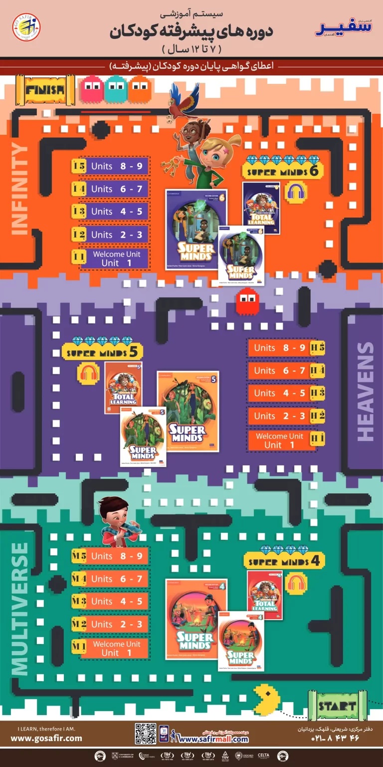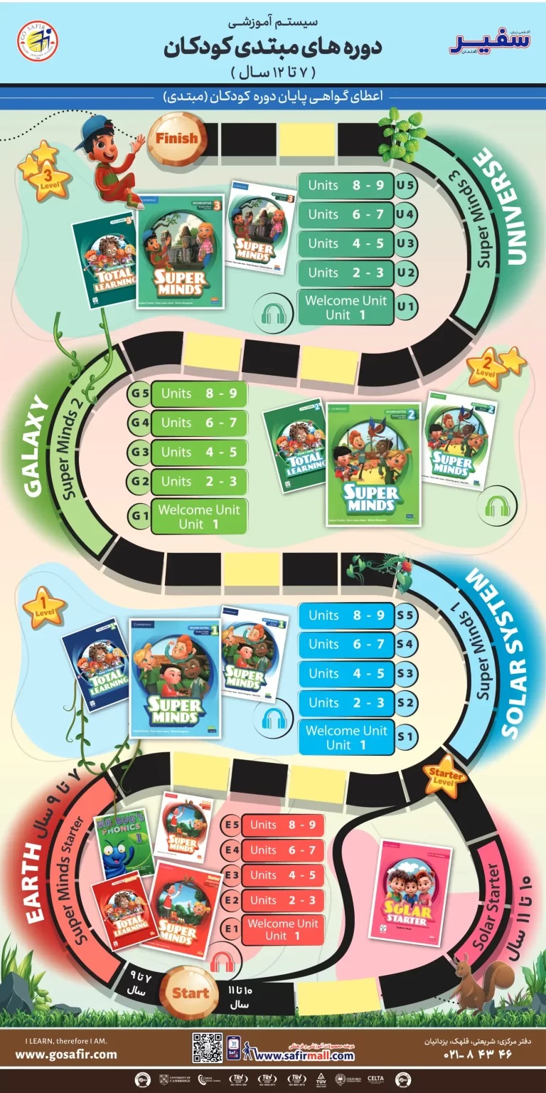 آموزش کودکان در موسسه زبان سفیر بر پایه ویرایش دوم مجموعه محبوب Super Minds از انتشارات کمبریج است. این مجموعه، که در سال 2022 منتشر شده، با تمرکز بر تقویت خلاقیت و انگیزه زبانآموزان، دارای تصاویر رنگارنگ و تمرینهای متنوع است.